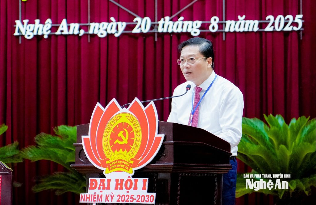 Đại hội vinh dự được đồng chí Bí thư Tỉnh ủy thay mặt Ban Thường vụ Tỉnh ủy dự và phát biểu chỉ đạo Đại hội. Đồng chí Bí thư Tỉnh ủy đã động viên, ghi nhận những kết quả của Đảng bộ đạt được trong nhiệm kỳ qua, định hướng những vấn đề trọng tâm, nhiệm vụ trước mắt và lâu dài cần thực hiện trong nhiệm kỳ mới với mong muốn và quyết tâm cao xây dựng Nghệ An trở thành tỉnh khá của cả nước trong kỷ nguyên phát triển mới. Đại hội tiếp thu nghiêm túc, đầy đủ ý kiến phát biểu chỉ đạo của đồng chí Bí thư Tỉnh ủy và góp ý của các đại biểu; chỉnh lý để ban hành chính thức các Văn kiện của Đại hội.